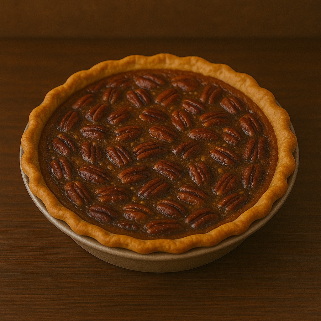 How to make: Preheat oven to 350°F. Whisk eggs, corn syrup, brown sugar, melted butter, vanilla, and salt. Arrange pecans in pie crust and pour filling over them. Bake 50-60 minutes until filling is set but still slightly jiggly in center.